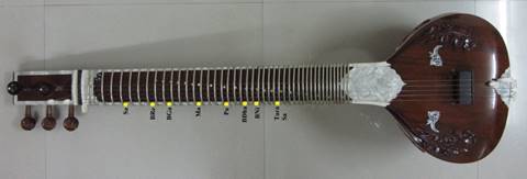 Fixing the 22 frets for 22 Shrutis and fixing the Strings